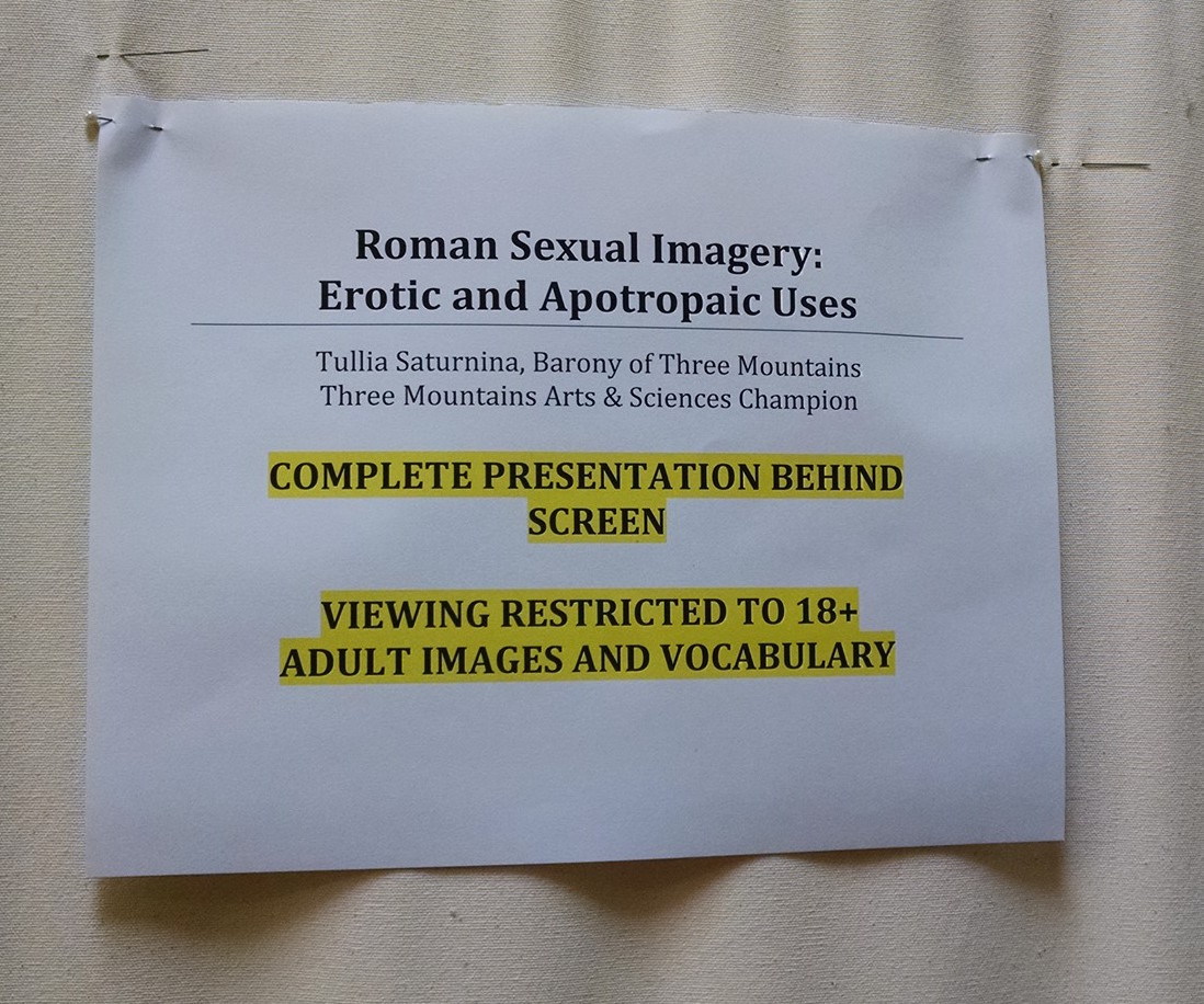 I went with a single entry on Roman Sexual Imagery. I plan to polish it up, based on feedback from my judges, and offer it again locally. It was a challenge to display, given that in our culture body parts are considered offensive / shocking / not for children’s consumption.