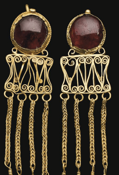 Earrings, 2-3rd century, gold and garnet, Christie’s, Sale 2770, Lot 5628146.
