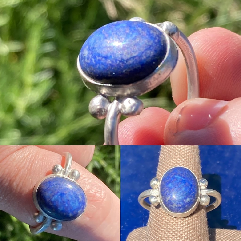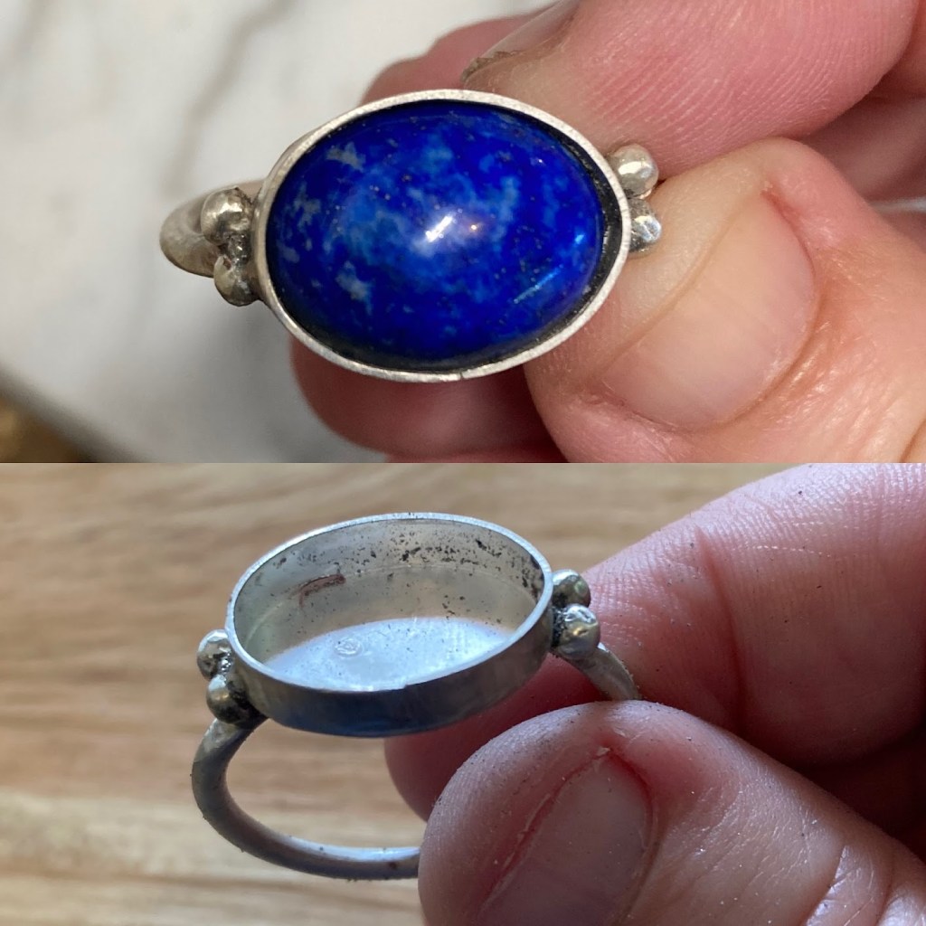 The first time I made this ring, I started with the stone in a horizontal position like ring #3 above. I thought it would be more masculine-looking. Unfortunately, after making it I realized it was too wonky. The top was too wide, creating a flattened oval shape for the finger space, and overall the ring wasn’t straight: I made it just after having Covid, while still suffering from fatigue and brain fog (by the way: Antioxidants are great for stopping the cytokine storm of Long Covid – once I started taking them, everything cleared up and I’ve felt great since).